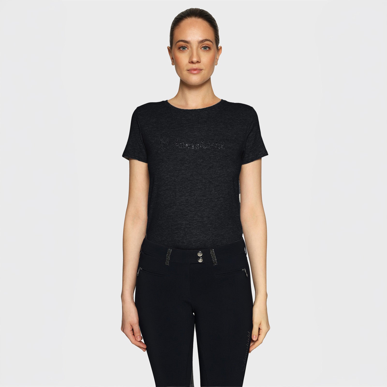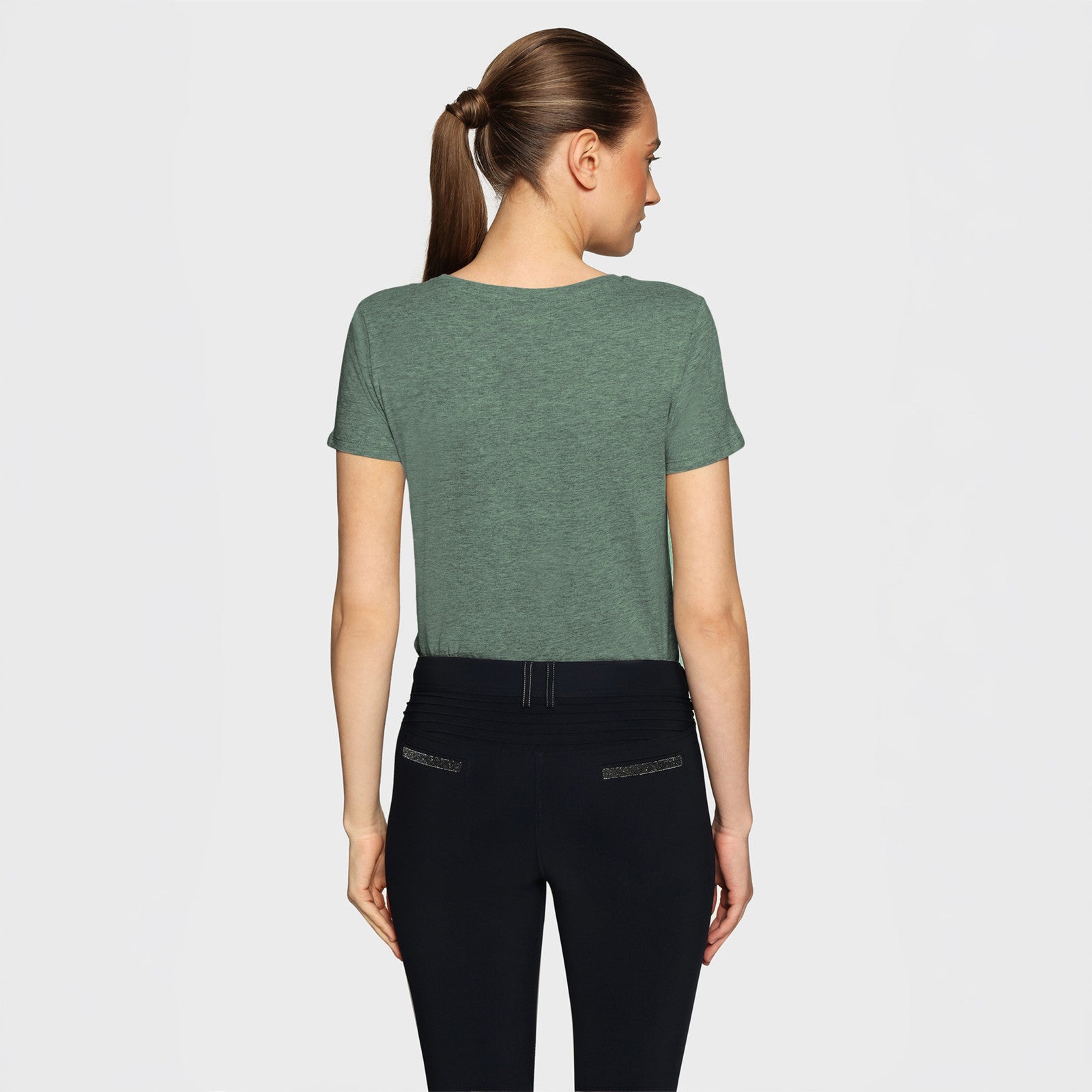 The Ariana T-shirt is the perfect combination of simplicity and everyday elegance. Its classic short-sleeved cut and round neck offer immediate comfort, whether on horseback or in everyday life. Made of 100% soft cotton and made in France, it gently wraps the skin while remaining resistant over washes.